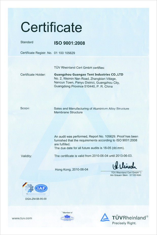 GuangAo Tent is one of the first manufacturers of tent in South China. Since its establishment, we have continuously improved the quality of our products. It is favored and loved by customers all over the world, such as Malaysia, Canada, Australia, New Zealand, Philippines, Sri Lanka, Dubai, India and other dozens of countries and regions.