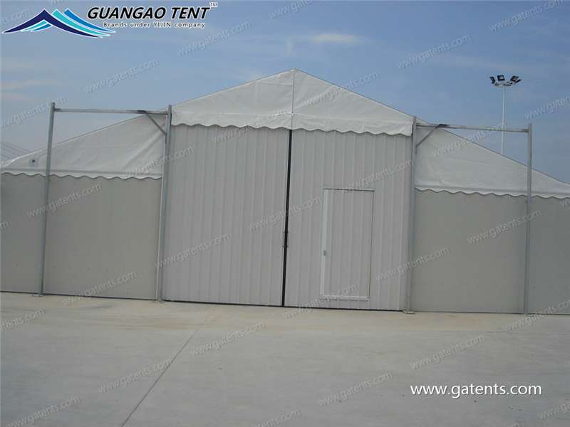 Storage tents can better solve the problem of cargo storage for manufacturers and merchants, and the slope of the roof is conducive to drainage. The interior design of the tent is to take safety measures to ensure the safe use of the tent, providing hard walls, sandwich panel walls, color steel tile walls, rolling gate accessories, etc.