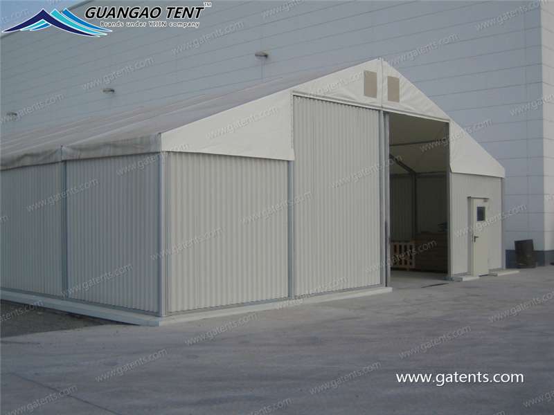 Storage tents can better solve the problem of cargo storage for manufacturers and merchants, and the slope of the roof is conducive to drainage. The interior design of the tent is to take safety measures to ensure the safe use of the tent, providing hard walls, sandwich panel walls, color steel tile walls, rolling gate accessories, etc.