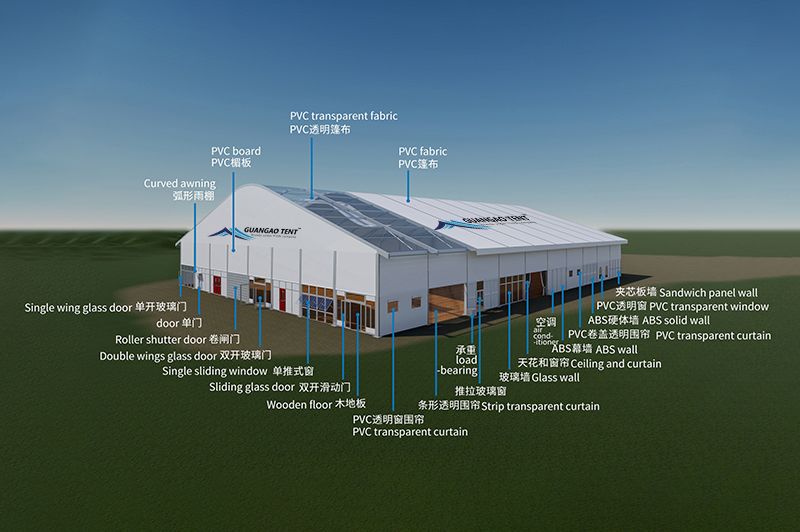 Las carpas curvas son adecuadas para salas de exposiciones, estadios, eventos de bodas, almacenes, industria de protección ambiental, instituciones médicas, etc.
