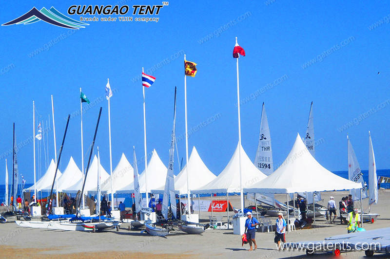 Las carpas pagoda son ampliamente utilizadas en depósitos temporales, fábricas, construcciones temporales, carpas de exhibición, carpas de construcción, socorro de emergencia, etc.