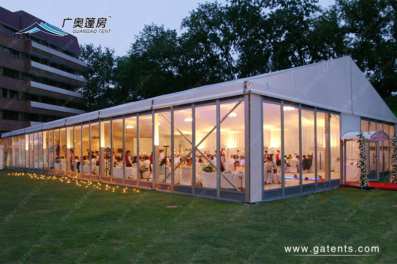廣奧建造餐廳篷房造型多,包含人字形、拱形、弧形、球形、組合型等等。篷房材料:PVC篷布、鋼化玻璃墻、ABS墻體、高強度純6061-T6鋁合金框架等。使用壽命長達20多年,室內(nèi)配套齊全,篷房結(jié)構(gòu)穩(wěn)固耐用。
